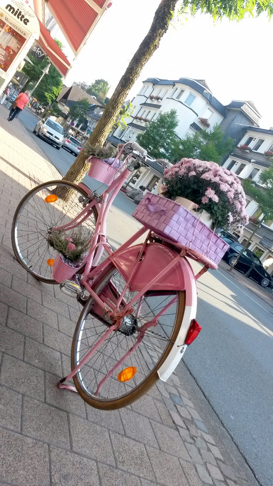 Später unternahm ich einen kleinen Bummel durch die Einkaufsstraße und schmunzelte über ein feines rosa Fahrrad vor einem Geschäft. So kann man auch auf sich aufmerksam machen. Nach einem leckeren Abendessen in einem benachbarten Restaurant, und zwar dem Don Camillo in einer kleinen, umgebauten Kirche, fielen mir nur noch die Augen zu und ich schlief ausgezeichnet.