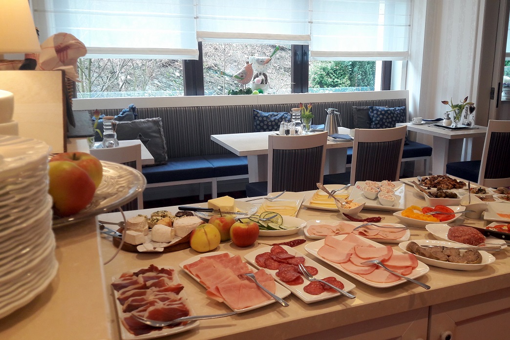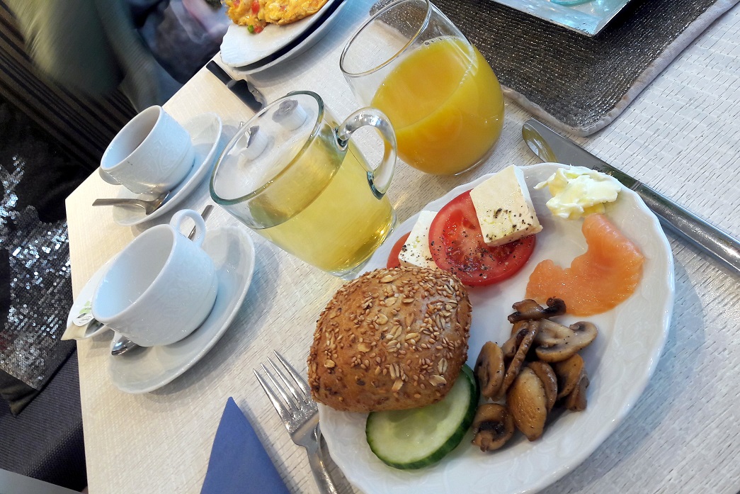 Das Frühstück am nächsten Morgen konnte sich sehen lassen. Frische Bio Produkte aus der Region und verschiedene Wassersorten, die u.a. mit Ingwer angereichert waren, präsentierten sich in dem feinen neuen Frühstückssalon. Von meinem Fenstertisch aus ließ ich den Blick durch den Raum schweifen. Es war alles so geschmackvoll und gemütlich zusammengestellt. Zu gern wäre ich noch länger geblieben.
