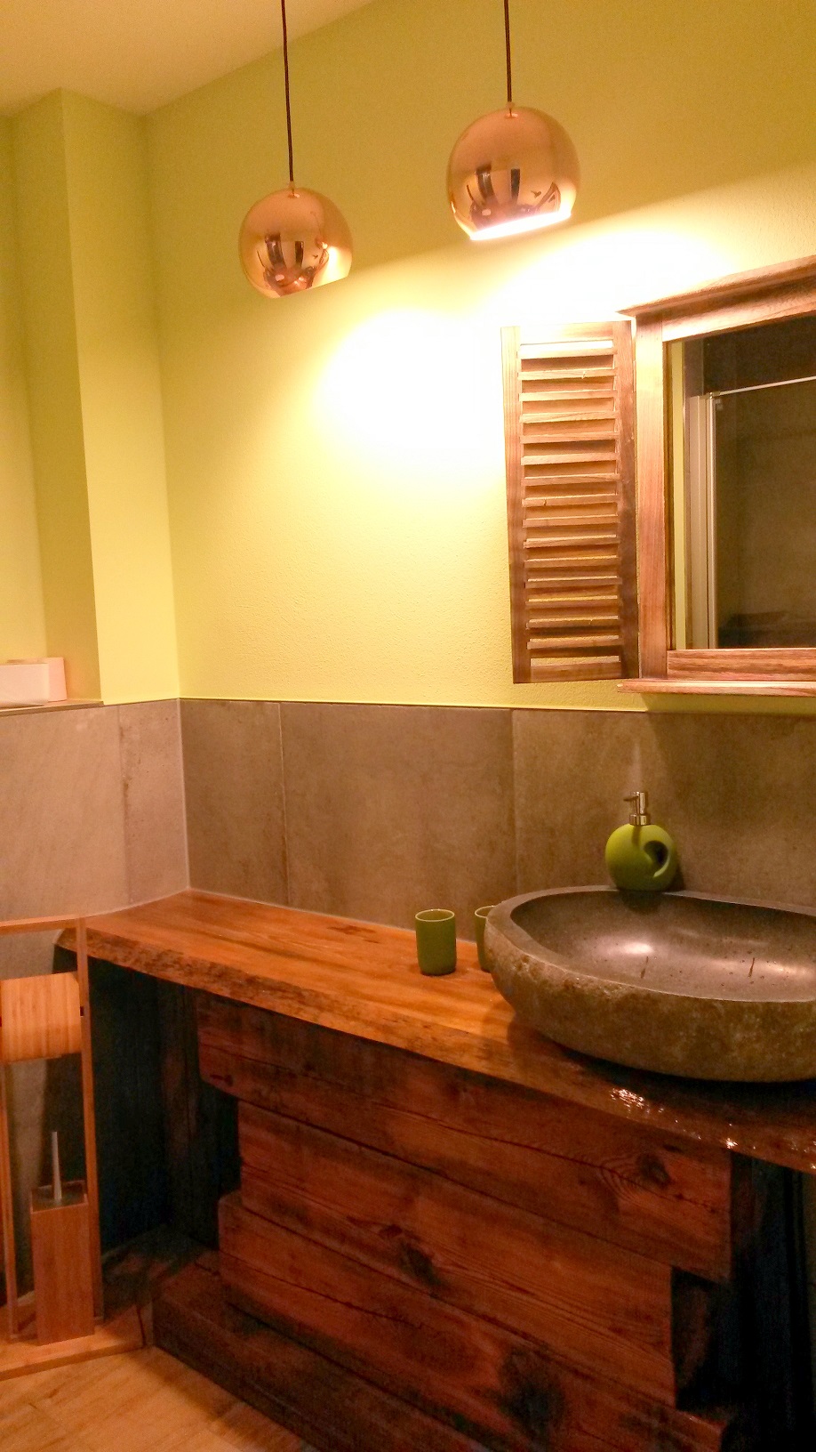 Sonst war aber alles bis ins letzte Detail vorhanden und farblich natürlich genauestens aufeinander abgestimmt – selbst der grüne Türstopper in unserem Bad. Von grünen Kleiderbügeln und grünen Betthupferln ganz zu schweigen. Als Eyecatcher tanzte allerdings doch etwas aus der Farbpalette – das rosa Toilettenpapier. Mein absolutes Highlight. Weiterhin steht den Gästen eine großzügige offene Wohnküche zur Verfügung, um sich auf Wunsch selbst versorgen zu können.