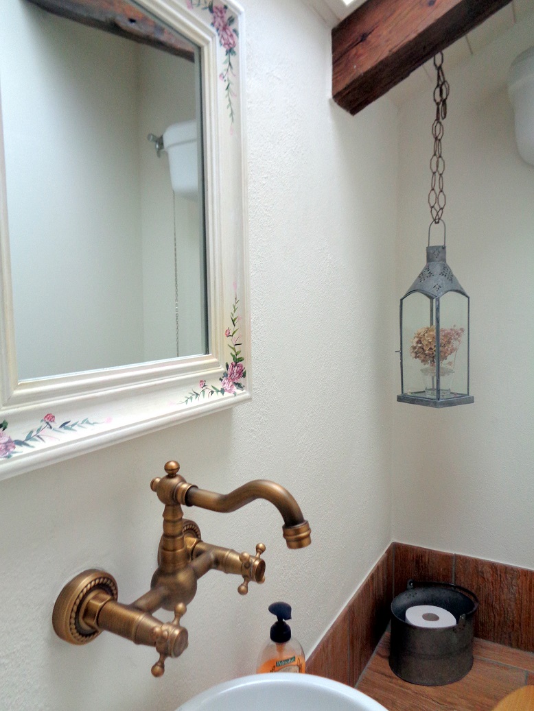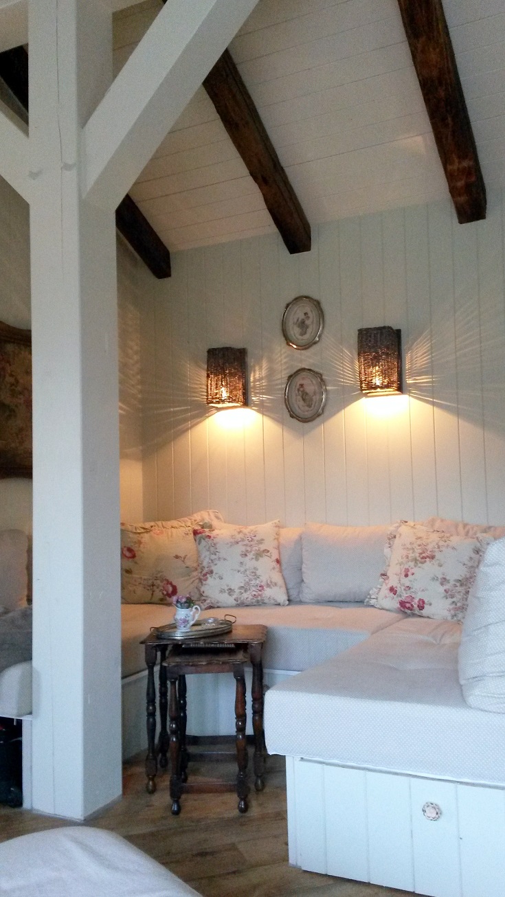Das Beste war, dass es immer etwas Neues, Wunderbares zum Staunen und Schmunzeln gab. Sei es ein Fernseher, der hinter einem verschiebbaren Bild in der Wand versteckt war, die Teller, die im aufgehübschten Vinatge-Herd geschickt Stauraum fanden, die Toilettenbürste, die in einer umfunktionierten Metallkanne stand, das Spülbecken in Form einer alten Schüssel oder einfach nur verschiedenste Bücher, die auf einzelnen vorstehenden Ziegeln an der Wand standen. Es schien, als hätte jedes einzelne Teil seine ganz eigene Geschichte.