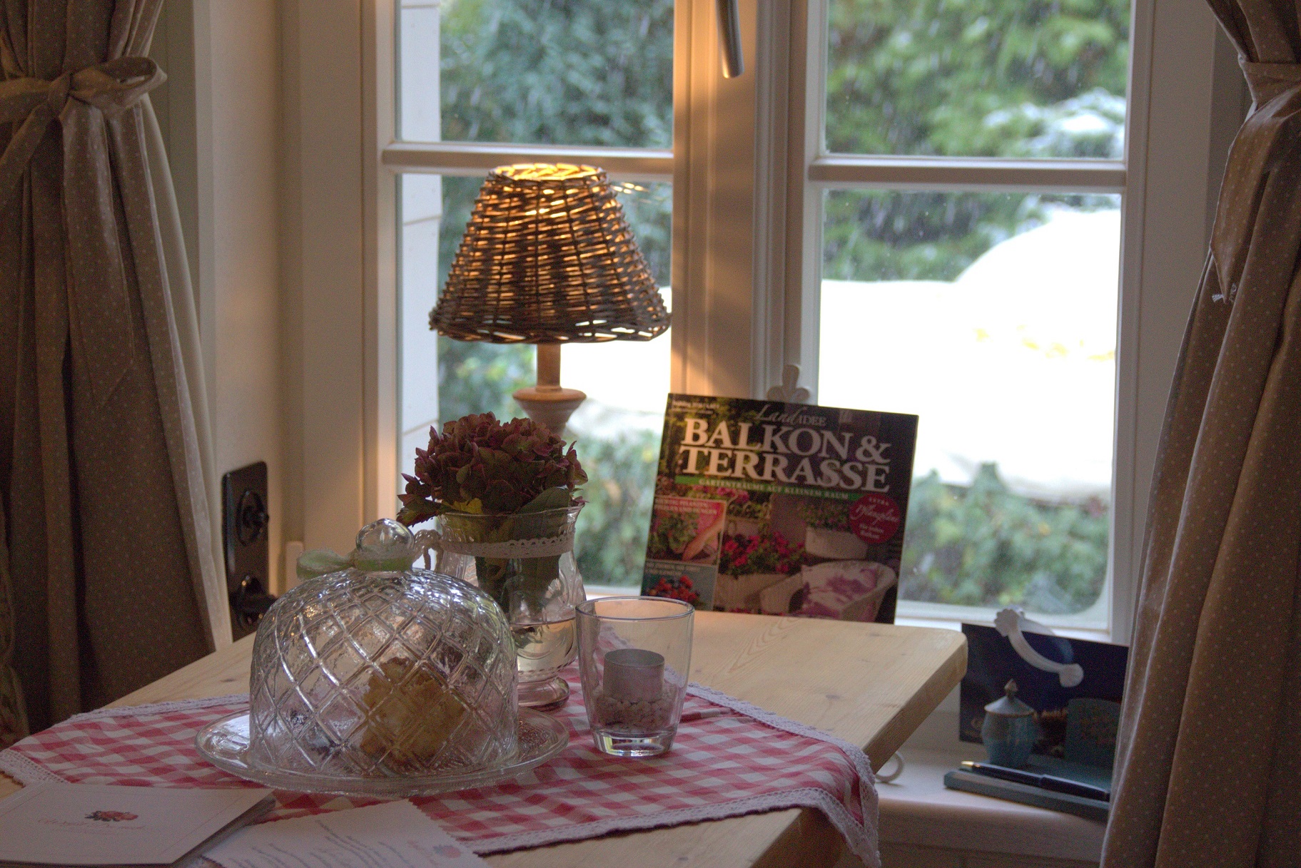 Doch für unseren Aufenthalt hatte ich mich für die ‚Gartenlaube‘ entschieden – ein Traum in Weiß und Creme sowie mit wundervollen Rosenmustern verziert. Die Fußbodenheizung hatte unser Traumapartment bereits mollig vorgewärmt. Frische Hortensienblüten und ein üppiges Stück Apfelkuchen hießen uns in unserem neuen Zuhause auf das Herzlichste willkommen. Ich glaube, Frau Kaufke bemerkte diesen Glanz in meinen Augen. Diesen Glanz, den man nur hat, wenn man zutiefst vom Glück ergriffen ist. Und dann gehörte dieses Glück uns – für ganze drei Tage.