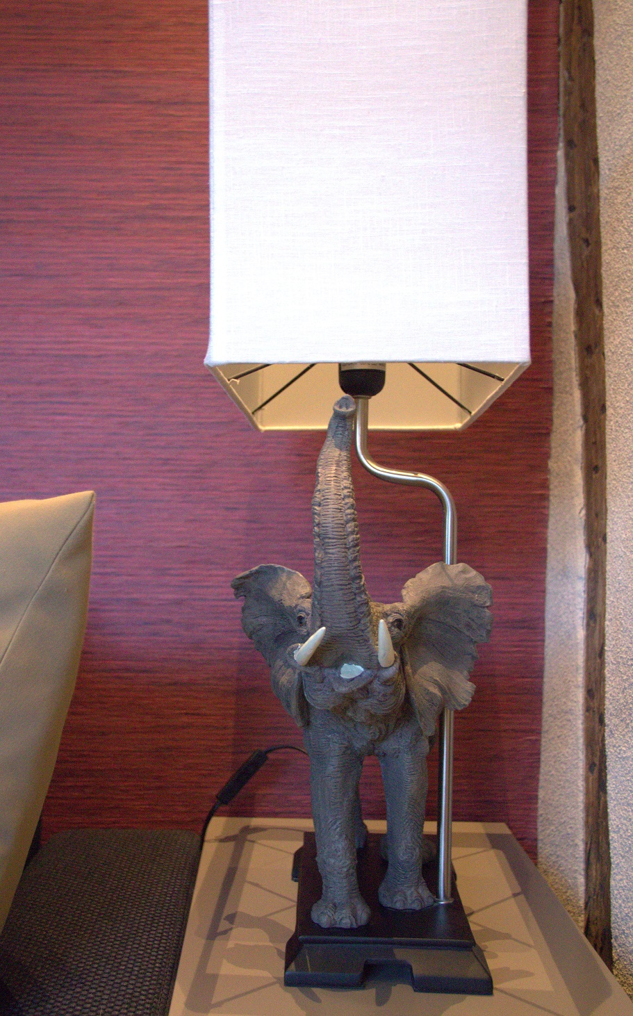 Direkt neben uns lag die „Out of Africa“ Suite, die mit 35 qm² herrschaftlichen Platz und so manchen Luxus bietet. Das Leinen behangene Himmelbett, die Elefanten-Lampen rechts und links der Couch, oder die stilvolle Badewanne im Bad mit Blick zum Schlafbereich – hier werden Träume wahr, afrikanisches Lebensgefühl inklusive.