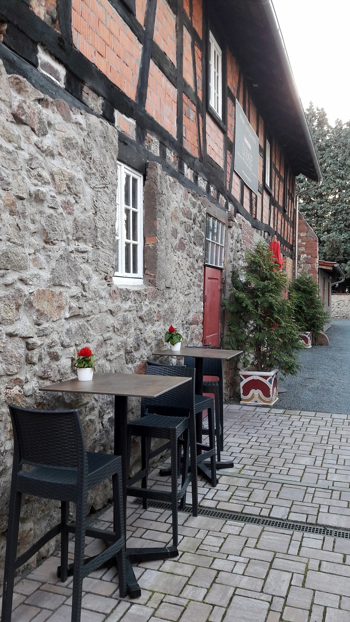 Bei schönem Wetter lässt sich dieses auch herrlich auf der Außenterrasse in dem netten Innenhof samt Garten genießen. Die afrikanischen Klänge, die Kunstfiguren und das prägende Logo an der Gartenwand sorgen für das stimmige Lebensgefühl, welches sich ganz automatisch einschleicht, sobald man durch die rote Eingangspforte herein spaziert.