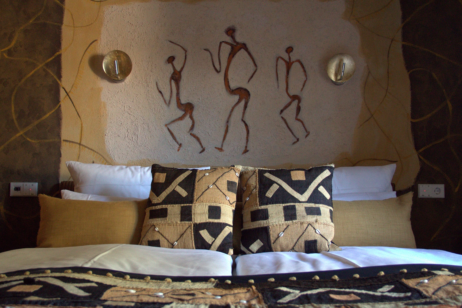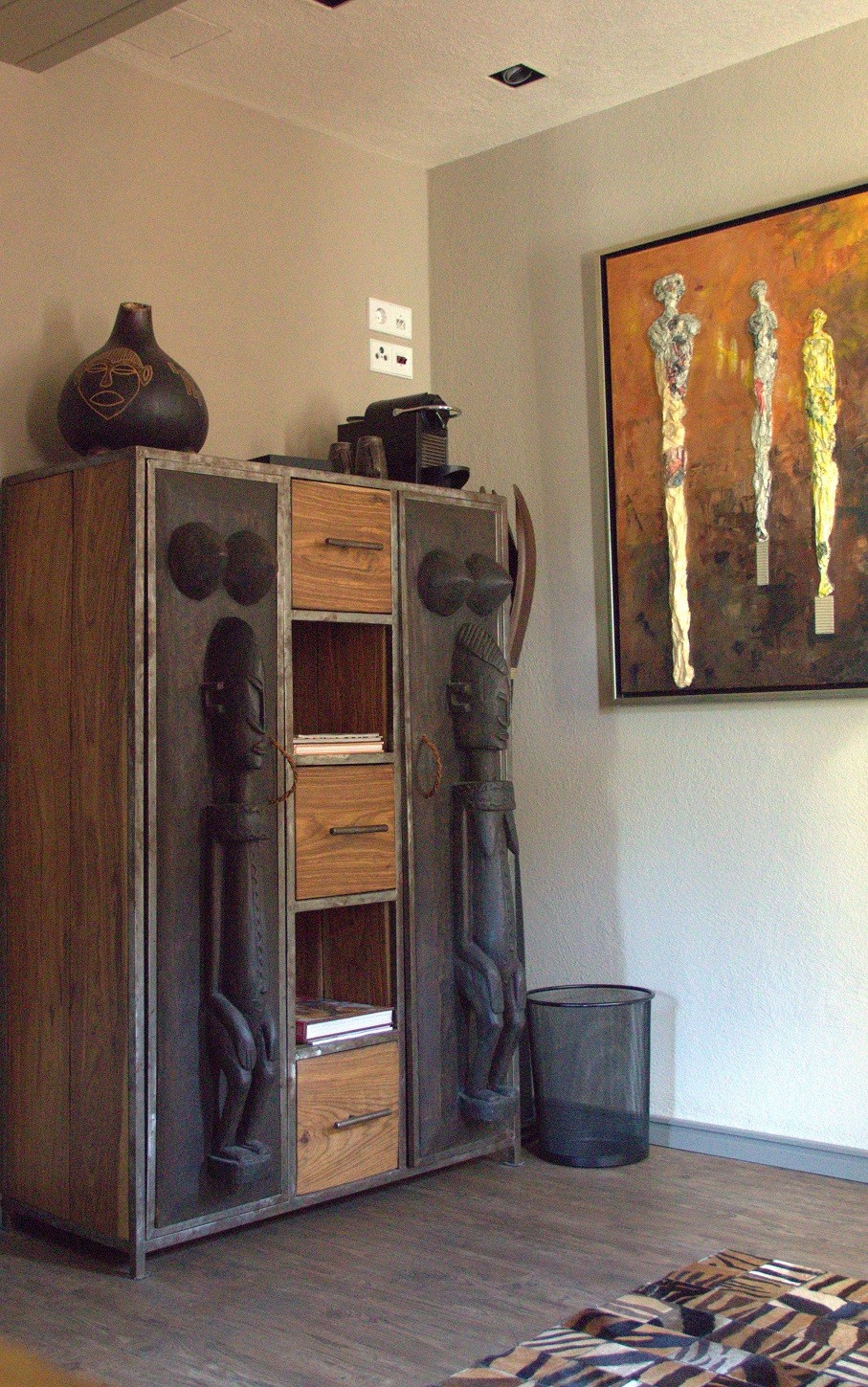 Doch auch das „Savuka“ Zimmer zu unseren anderen Seite schaffte durch sein ausziehbares 2-Meter-Bett und der eleganten Ausstattung genau wie die angrenzende „Mal D‘ Afrique“ Suite mit ihren kunstvollen Gemälden, die von Monika Schodlock persönlich erschaffen wurden, eine sagenhafte Welt der Träume.