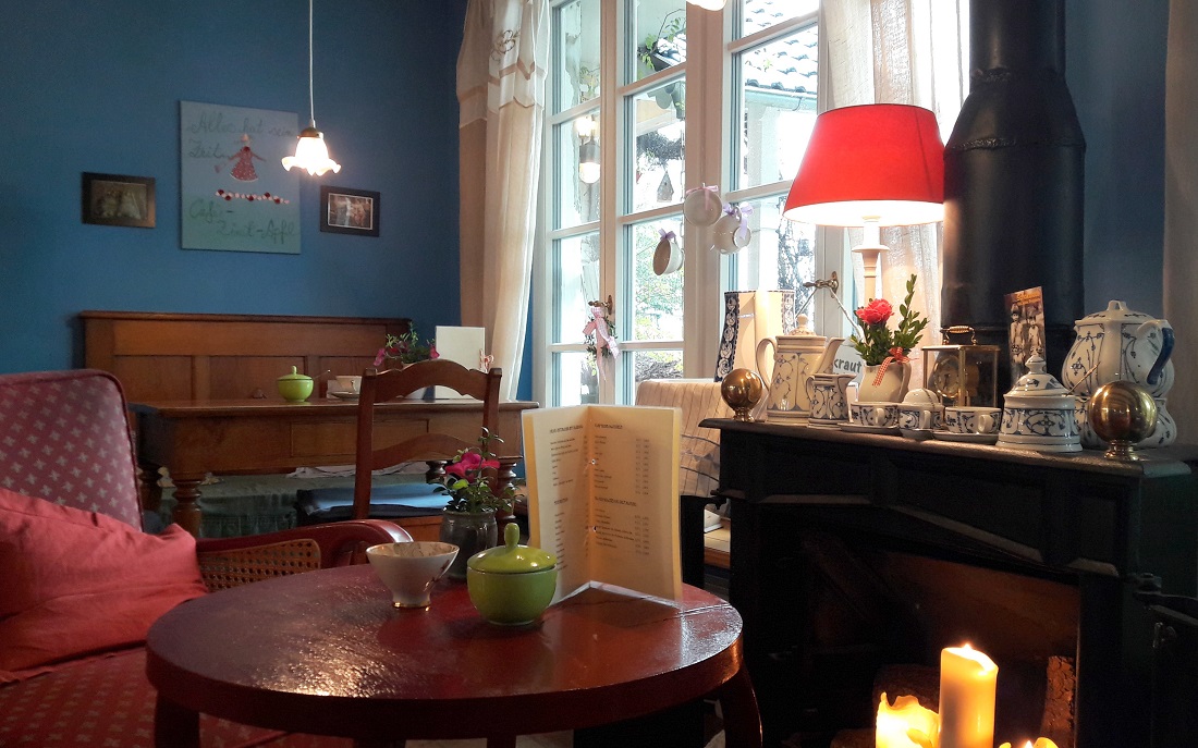 Wiedereinmal zeigt sich, wie unglaublich positiv sich die richtige Atmosphäre in einem Café auswirken kann. Um diese zu zaubern, braucht es mehr als nur Fingerspitzengefühl – es braucht pure Liebe. Schon von außen wird man als Gast von schön arrangierter, jahreszeitlich stimmiger Deko aus Blumen & Co. begrüßt. Man kann gar nicht anders, als dieses Café zu betreten. Fast ist es so, als würde ein köstlicher Zimtduft herausströmen und alle Menschen in seinen Bann ziehen. Im Inneren kann man sich kaum entscheiden, an welchem der liebevoll dekorierten und bunt zusammen gewürfelten Tische man Platz nehmen möchte. Vielleicht am Kerzen-Kamin, vielleicht am Fenster oder doch lieber auf einem bequemen Sofa?