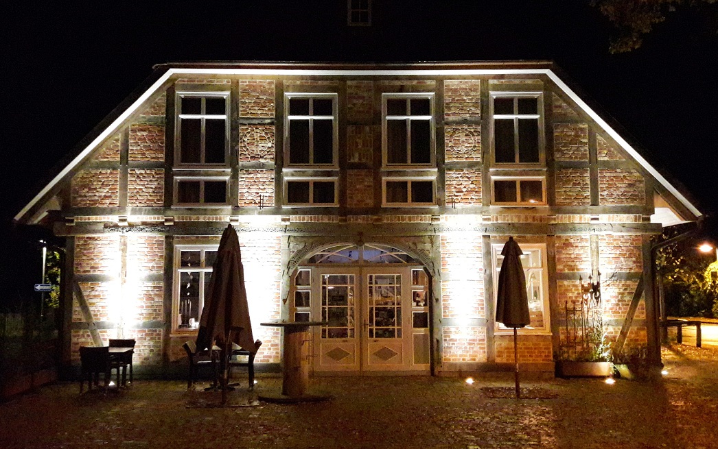 Für den kleinen Hunger (oder in meinem Fall auch großen Hunger) kann man abends hervorragend in eines der benachbarten Restaurants gehen, da die ‚Schmucke Witwe‘ ein garni Hotel ist. Und so ein abendlicher Spaziergang durch Bispingen ist absolut zu empfehlen, nicht zuletzt, um die ‚Schmucke Witwe‘ in all Ihrer Schönheit zu sehen, denn angestrahlt wirkt sie einfach nur bezaubernd.