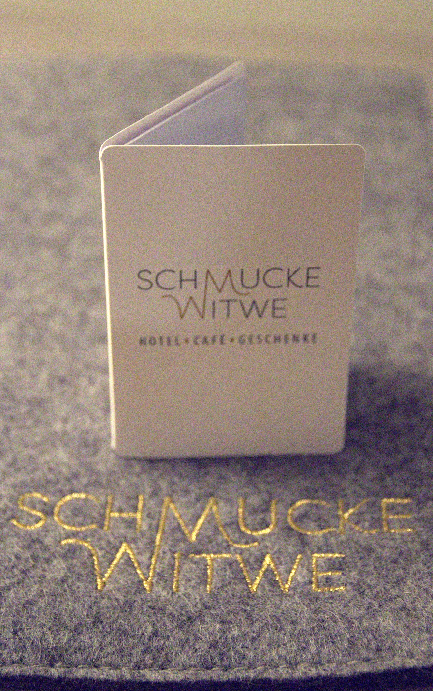 Zur rechten Seite im Erdgeschoss der ‚Schmucken Witwe‘ befindet sich der Frühstückssalon, der am Wochenende mit seinem süßen und feinen Buffet auch so manche Frühstücksgäste von außerhalb anlockt. Doch als Hotelgast hat man schon einen Tisch reserviert bekommen – ein toller Service. Und so möchte man am liebsten den ganzen Tag in diesem netten Café verbringen, zwischendurch eine Köstlichkeit vom Buffet nehmen, welches von Quittengelee über Käse und Lachsplatten bis hin zu frischem Rührei mit Schinken und Schnittlauch alles Leckere aufweist, was man gern mag. Frischer Obstsalat und Joghurt fehlten natürlich auch nicht.