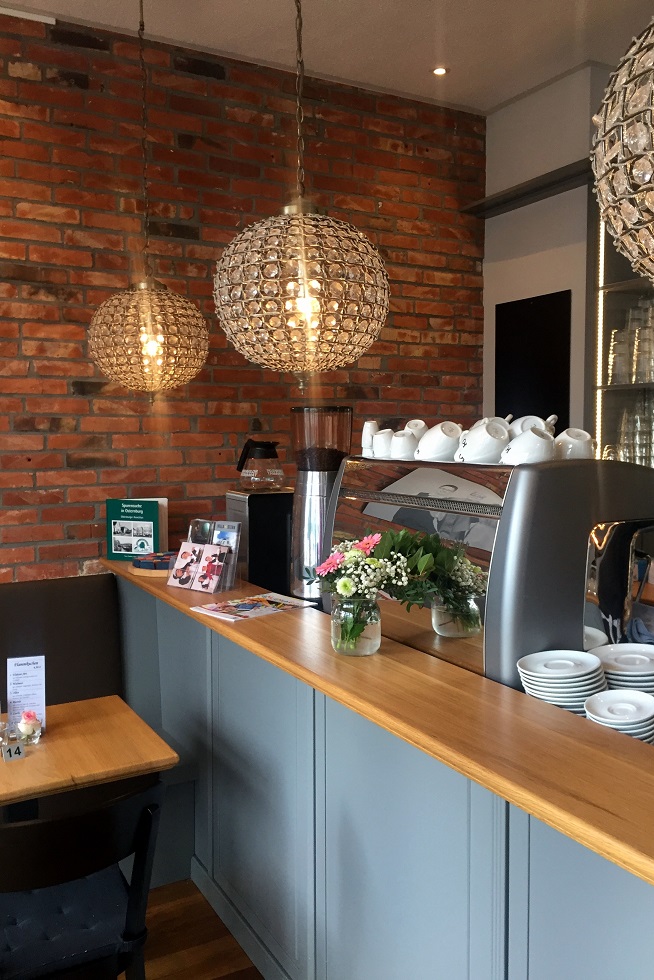 Die wunderschön restaurierte und im April 2017 als Hotel eröffnete Jugendstilvilla ist ein echtes Schmuckkästchen, sowohl von innen als auch von außen. Man konnte gar nicht anders, als sich erstmal im Cafébereich niederzulassen und eine Kleinigkeit für den Hunger zwischendurch zu bestellen. Zum Glück waren wir recht früh dran, sodass das Café noch leer war, um in Ruhe ein paar Fotos zu machen. Doch das sollte sich schnell ändern. Ehe man sich versah, war die ‚Schnuppe‘ voll, denn das Café ist natürlich auch bei den Oldenburger Einwohnern äußerst beliebt. Bei dem Team, dem Ambiente und den leckeren Speisen (wir teilten uns einen Flammkuchen) auch kein Wunder. Schon hier fühlte man sich rundum glücklich.