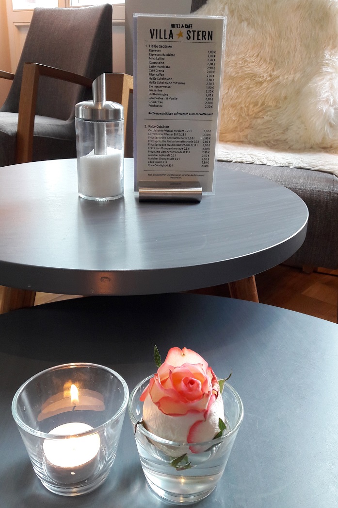 Aber von vorne. Diesmal waren zwei Mädels unterwegs, genauer gesagt zwei Hotelmädels, Carma und Christine (Wippi). Um es gleich vorwegzunehmen: wir waren tief begeistert (und sind es immer noch). Die Villa Stern bietet mit gerade einmal 15 Themenzimmern und dem Café ‚Schnuppe‘ im Erdgeschoss sowie einem Weltklasse Team mit ganz viel Gastgeberleidenschaft im Blut, einfach alles, was man sich als Gast nur wünschen kann.