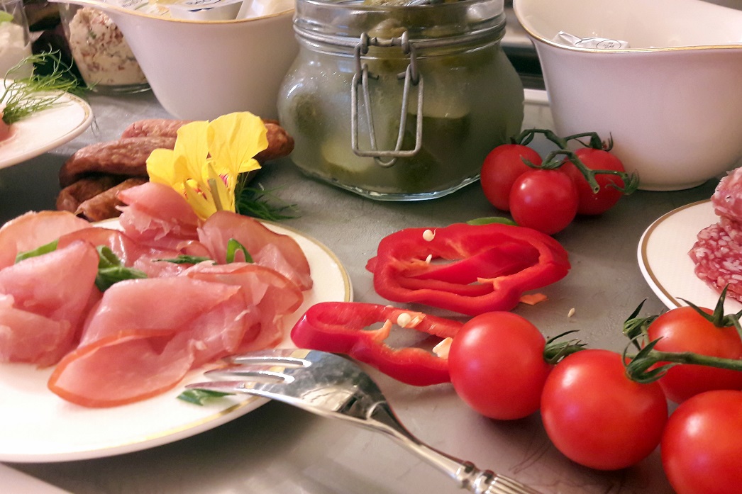 Ganz verträumt und überwältigt von dieser wundervollen Erfahrung genossen wir unser Frühstück im Hotel. Und was durfte nicht fehlen? Natürlich die Spreewaldgurke, hier in Variation als Smoothie am Tisch serviert, als Gurkenbratwurst oder im selbstgebackenen Gurkenbrot. Alles war vom feinsten, mit schönen Blüten ausgarniert. Und auf die wunderbare Frage, ob man gut geschlafen habe, konnten wir nur positiv antworten.