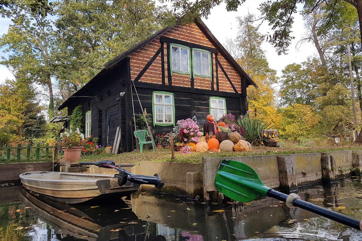 Aber nun erstmal auf zur Spree und ihren bekannten Bootstouren (gut, dass wir beim Check-In nochmal darüber sprachen und die besten Tipps für eine Tour bekamen, sonst wäre dieses absolute Highlight wahrscheinlich an uns vorbei gegangen). Und reinzufälligerweise hatten wir intuitiv den besten Wochentag (Montag), die günstigste Tageszeit (morgens) und sowieso die beste Jahreszeit (Herbst) mit dem besten Wetter für unseren eintägigen Kurzaufenthalt im Spreewald ausgesucht. So hatten wir die kleinen Fließen nämlich fast für uns allein.