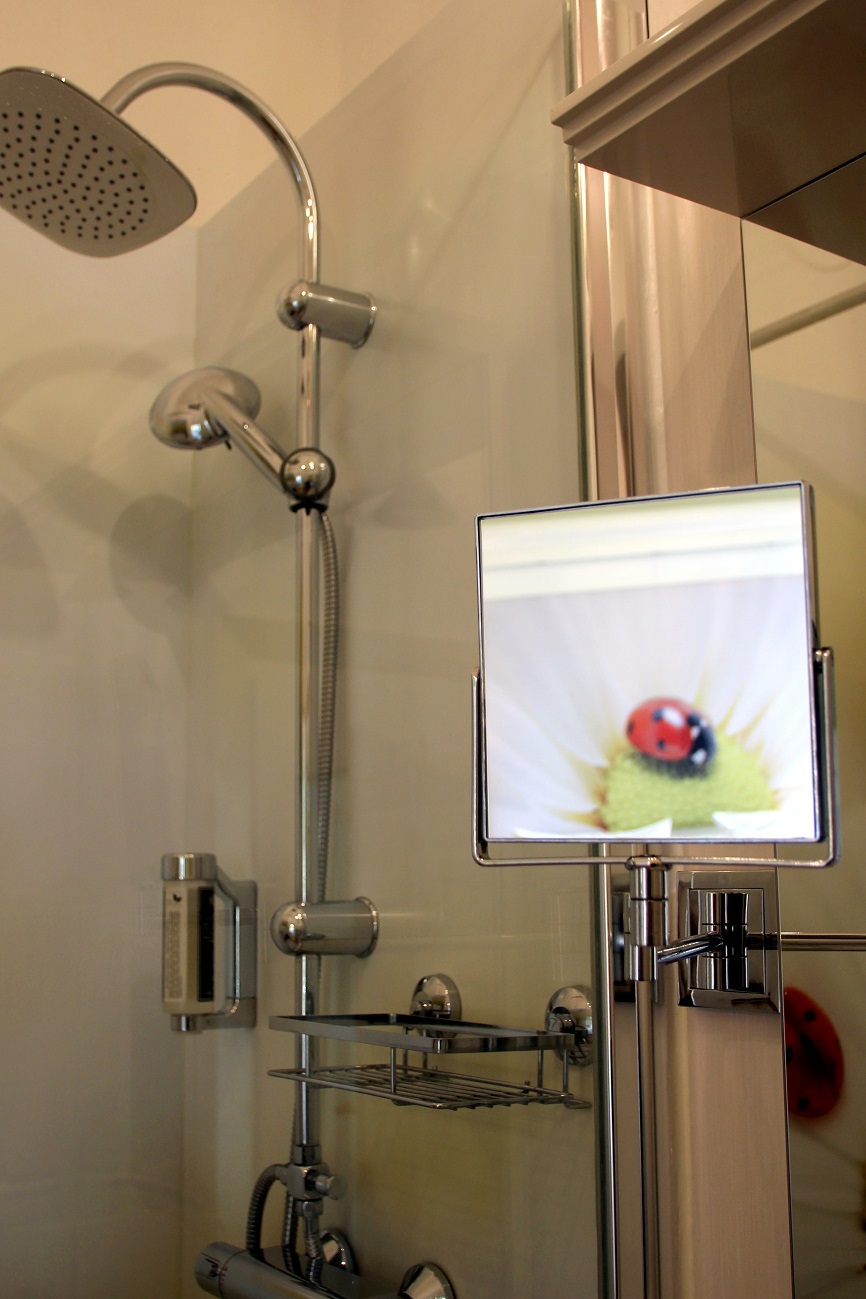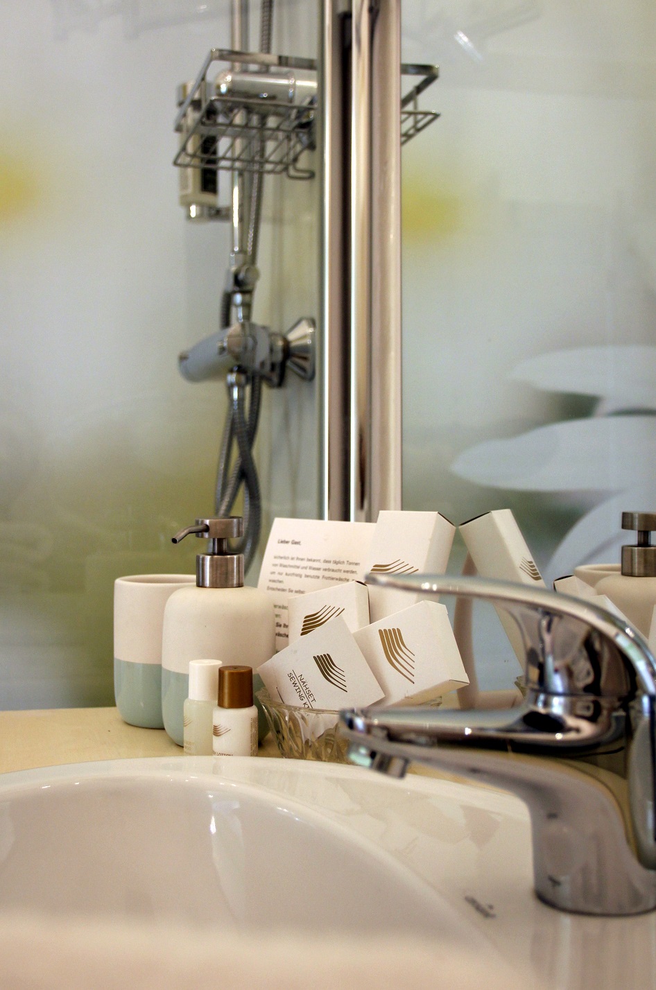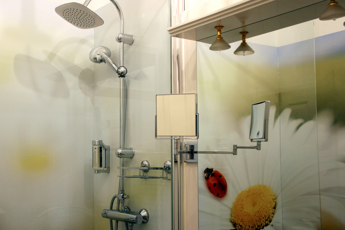 Und wenn es nicht schon Glück ist, dieses Hotel (genauer gesagt: Superior Bed&Breakfast) ausfindig zu machen – im Zimmer „Glück“ kommt man selbigen ganz nah. „Falls Sie es nicht schaffen, hier gibt es noch einen Glück-Notfallkasten“ erklärt Frau Ganswindt und wir müssen beiden grinsen 🙂 Schon da bin ich völlig von der Liebe zum Detail der Familie überwältigt.