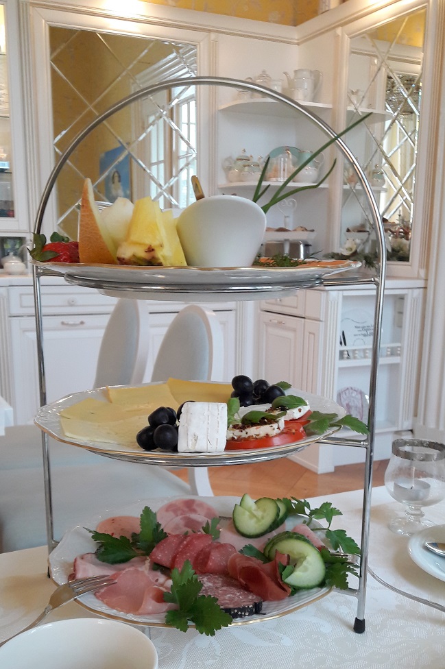 Vor allem sollte man das ‚Lübecker Krönchen‘ auch gleich für mehrere Tage buchen, nicht zuletzt um in den wiederholten Genuss eines wahrhaft königlichen Frühstücks in der anmutenden Schlossküche am Morgen zu kommen. Sollten die Frühstückszeiten der Gäste weit auseinanderliegen, wird sogar ein Teil, der sonst auf dem Buffet gereicht wird, ganz frisch zubereitet auf einer drei-stöckigen-Etagere geliefert. Wow:-) Nicht nur ich war sprachlos, auch der Geschäftsreisende am Tisch neben mir war voller Begeisterung für seinen Aufenthalt.