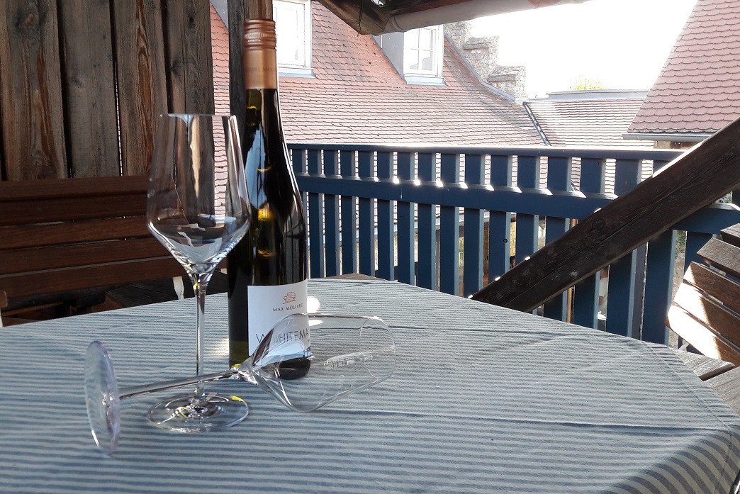 Beim nächsten Aufenthalt nehmen wir uns mal mehr Zeit, vielleicht für einen Kuchen auf der Terrasse im Innenhof, die auch für Nicht-Hotel-Gäste geöffnet ist. Oder für eine richtige Weinprobe, schließlich ist hier eine echte Winzerfamilie am Werk. Oder für einen noch längeren Spaziergang durch die Weinberge. Oder einfach nur, um noch mehr Zeit und Ruhe auf der Veranda des Veranda-Zimmers zu verbringen (obwohl die anderen Zimmer natürlich auch alle sehr schön aussehen). Oder für ein ganzes Blech Zitronenkuchen ❤