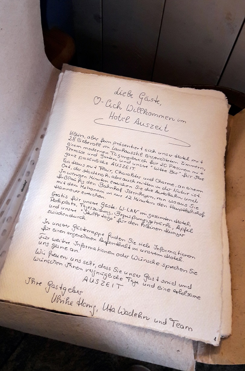Aber gut haben wir Gäste es eigentlich alle, dass es so ein bezauberndes kleines Hotel überhaupt gibt, welches von Tag zu Tag mit immer weiteren Ideen gefüllt wird. Um es mit den Worten der analogen Gästemappe in der ‚Lütten Stube‘ zusagen „Kiek mal rin“!