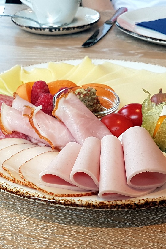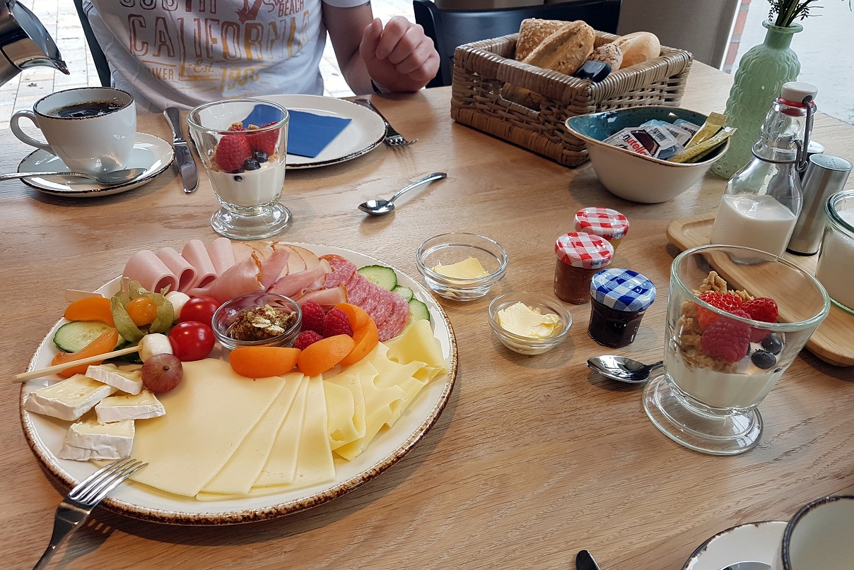Noch schöner kann da nur noch das Frühstück selbst sein, welches mit so viel Liebe angerichtet wird, dass man es einfach nur bestaunen möchte. Ob die sagenhafte Aufschnittplatte mit Obst garniert, der Joghurt-Erdbeer-Chrunch, der naturtrübe Apfelsaft, das frisch zubereitete Rührei, die Mini-Marmeladen-Gläser…. Es war vorzüglich.