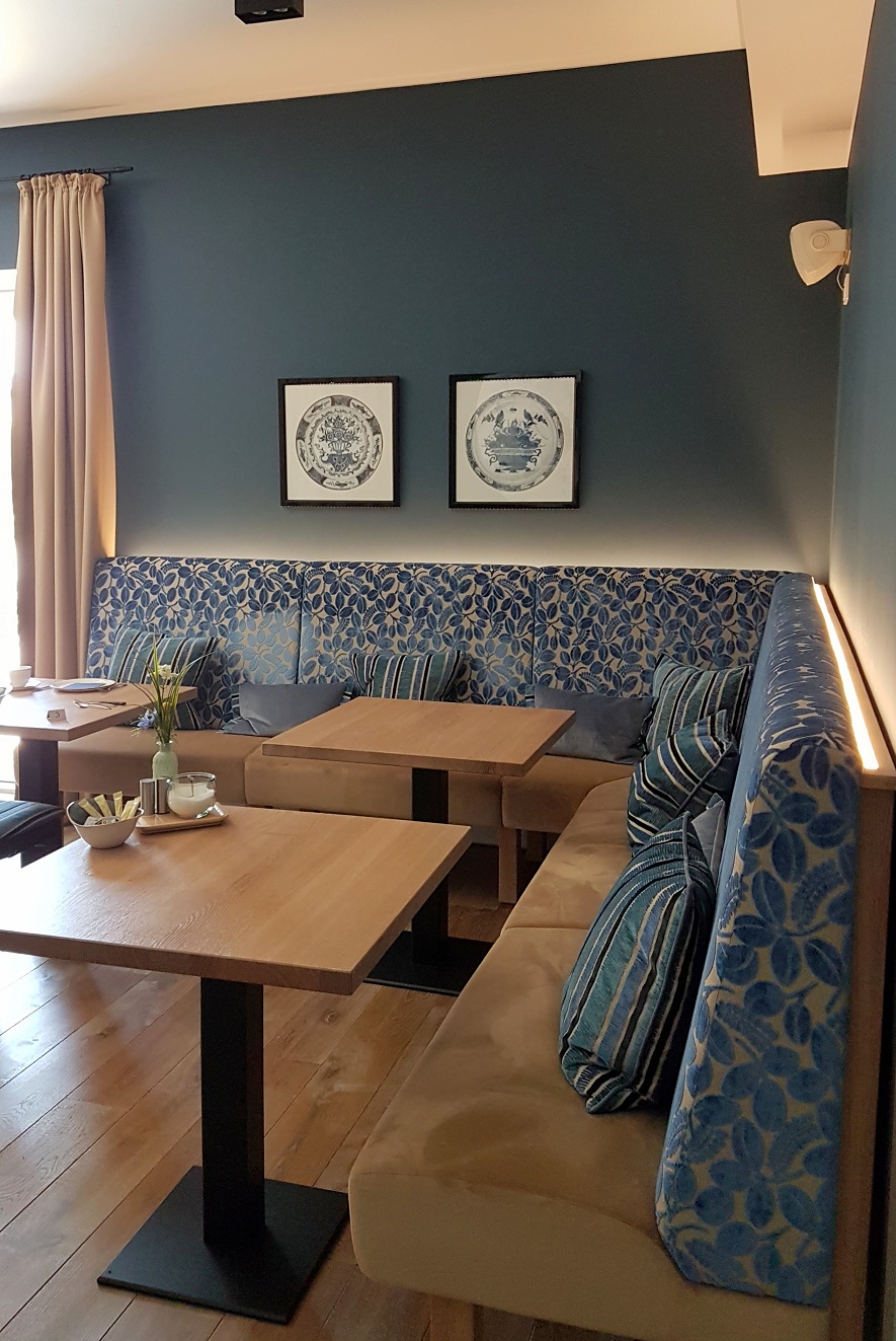Das Frühstück wird in einem separaten Raum in den kraftvollsten Blautönen serviert. Alles ist so perfekt aufeinander abgestimmt, dass man kaum so viele Fotos knipsen kann, wie nötig wären, um die Wirkung des Raumes einzufangen. Einzigartig. Schön.