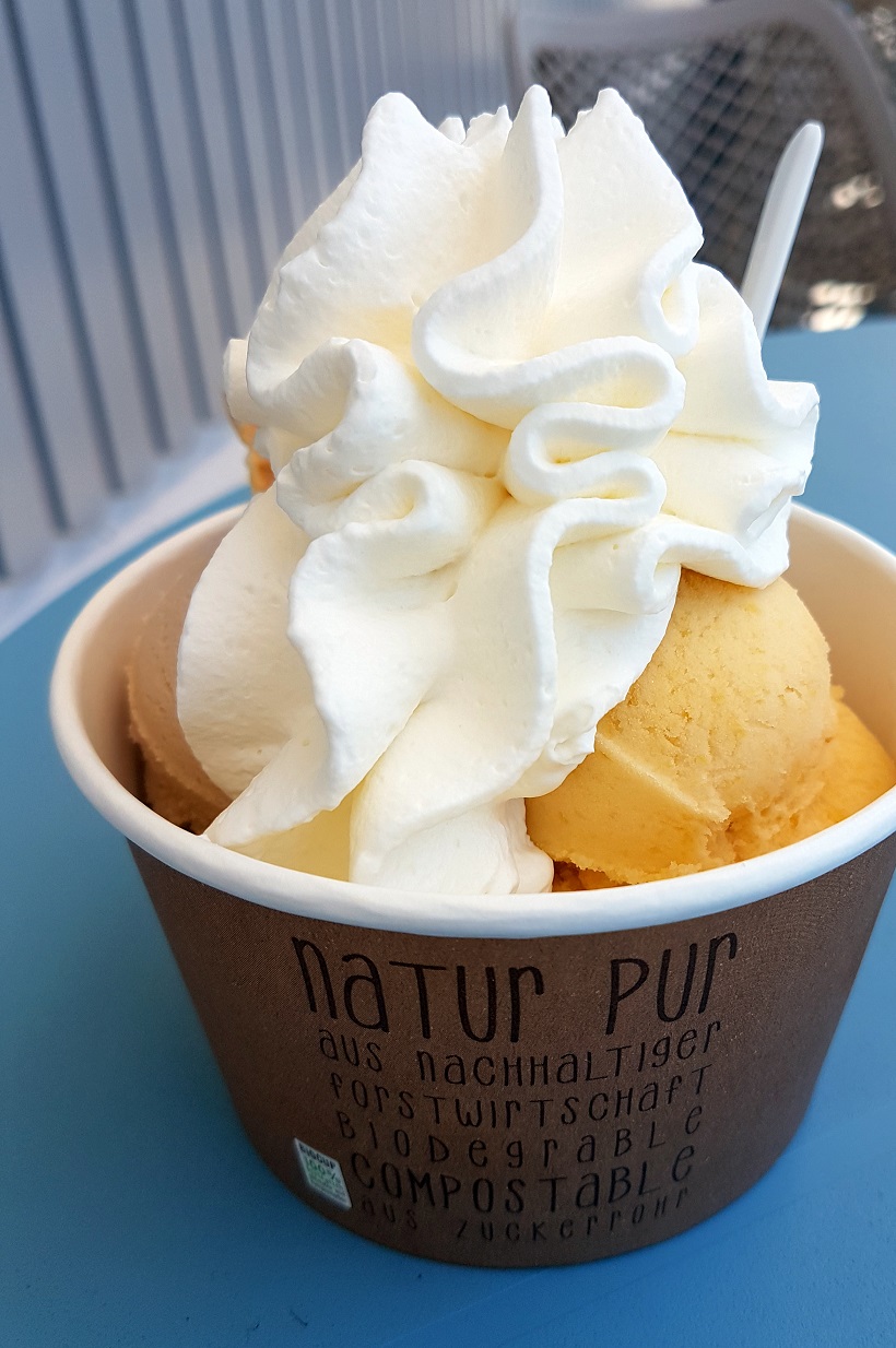 Das fleißige und supersympathische Team serviert übrigens nicht nur Eis (außer zu den eingeschränkten Öffnungszeiten, Corona sei “Dank” …), sondern auch feinste Kuchen & Törtchen, alle selbst hergestellt und aus regionalen Zutaten bestehend. Diese Kreationen probieren wir dann einfach beim nächsten Besuch.