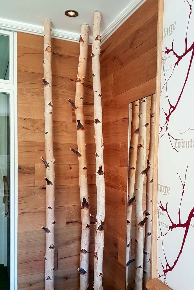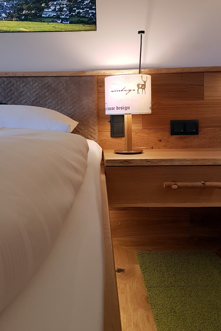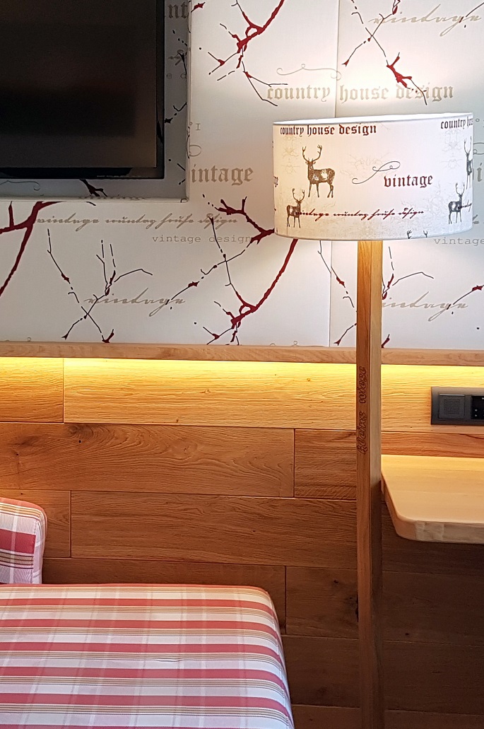 Der Stilmix der Materialien, vor allem mit viel Holz sowie ein stimmiges Lichtkonzept ließen mein Hotelherz ganz doll schlagen. Dazu Birkenstämme im Zimmer (sogar als Tür- und Schubladengriffe) und feine Wildmotive als Lampenschirme und Wandpolsterung – der Innenausstatter wäre bestimmt selbst gern eingezogen.