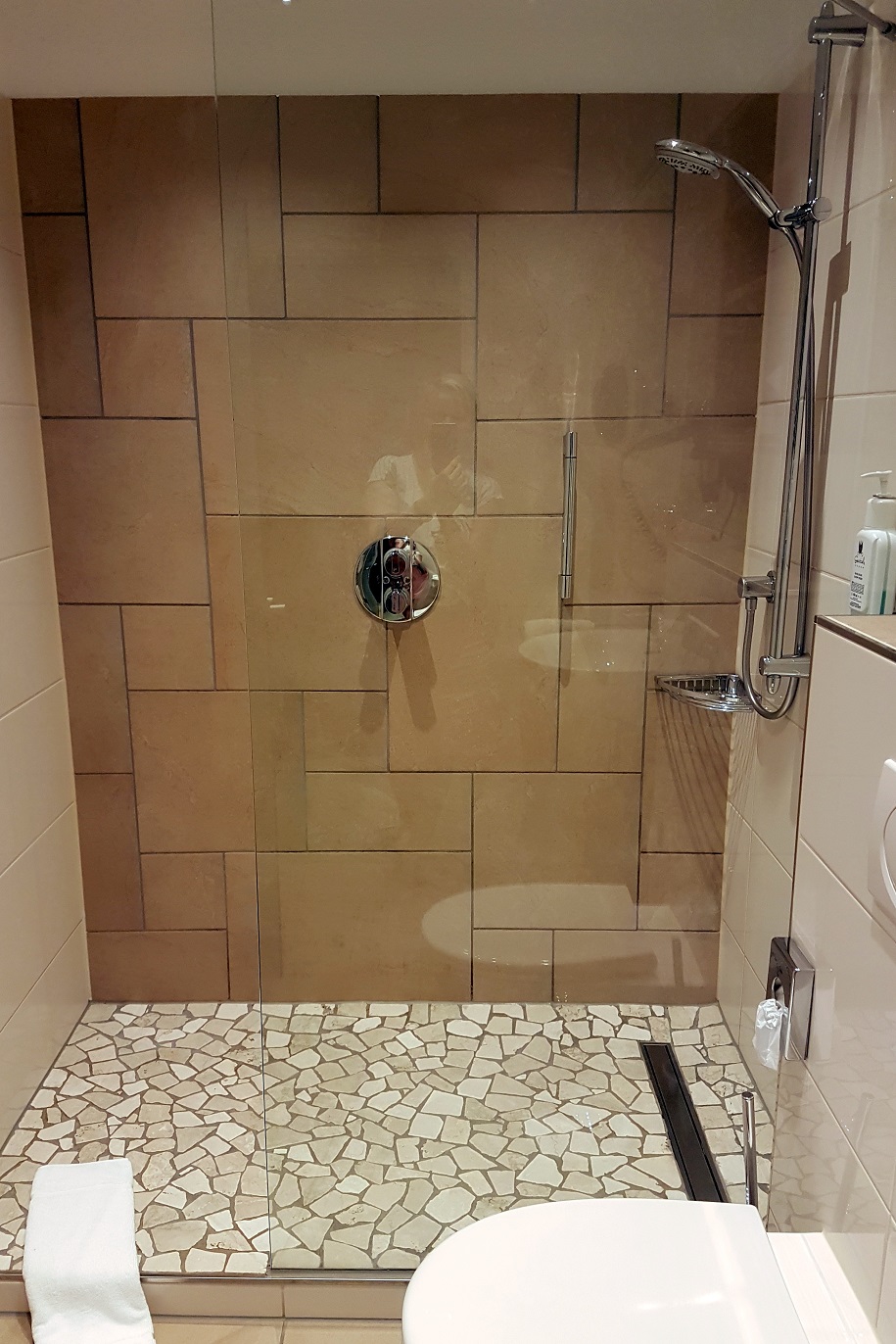 Auch das Bad ist top modern mit Walk-In Shower und viel Platz, genau wie im Zimmer!