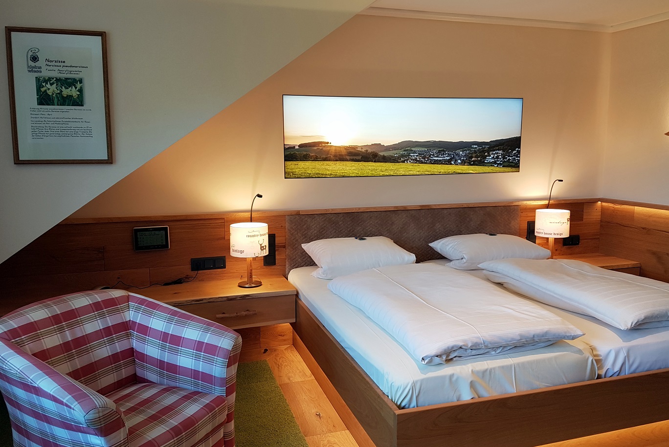 “Haben Sie noch einen Wunsch?” Familie Klein werkelte gerade in der Lobby und hinter der Bar, jederzeit aufmerksam für jeden Gast und dass bei vollem Haus – Respekt 🙂 “Danke, alles ist gut, ich wollte einfach nur noch eine kleine Runde spazieren gehen” – so meine Antwort und wir mussten alle grinsen. Der Tag hatte uns gut beansprucht. Nicht nur mich als Gast am ersten Tag des ersten Urlaubs mit kleinem Kind, sondern auch meine Gastgeber. Denn das kleine feine Landhotel ist eine beliebte Adresse im sauerländischen Schmallenberg. Und es war Sonntag 😉