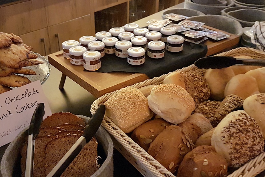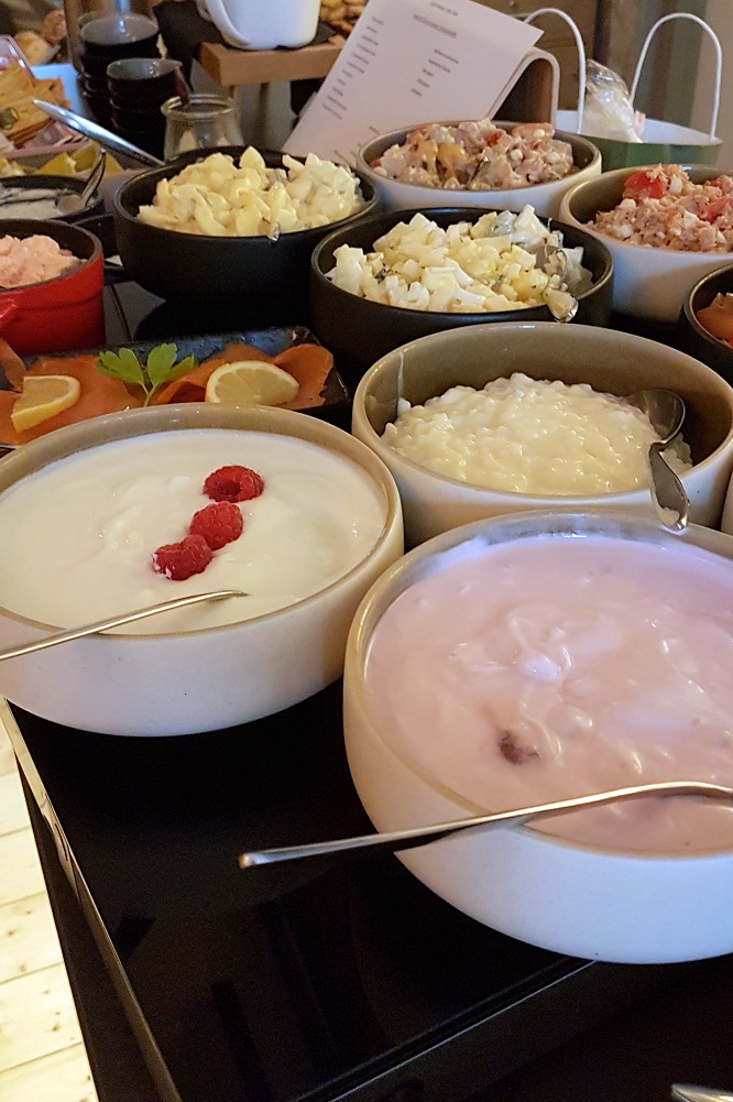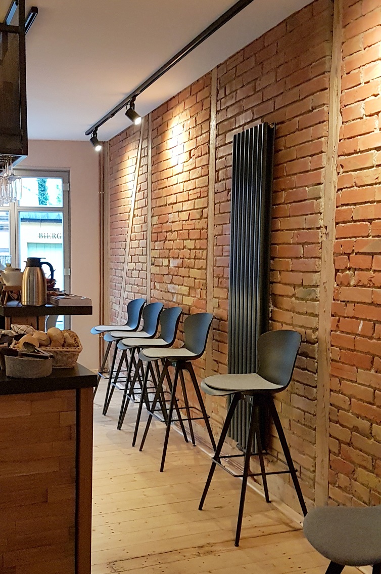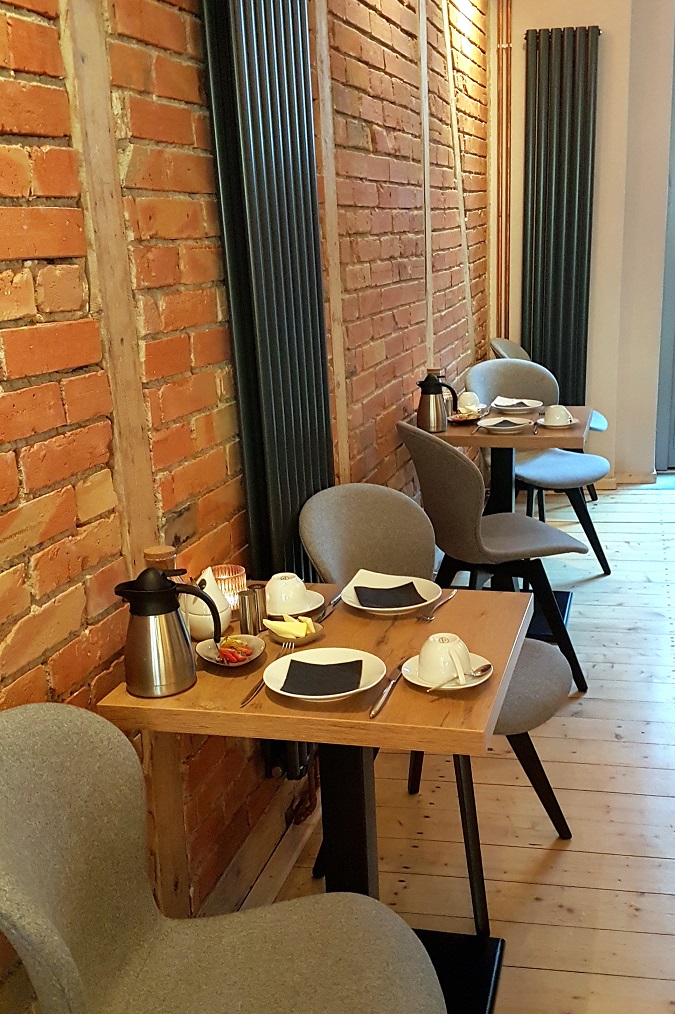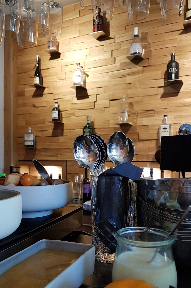 Und zum Frühstück kommen dann alle Gäste irgendwie zusammen. Zwar nicht an einem Tisch, aber an Tischen verteilt in die schmucke Weinbar mit Backsteinwänden und der einladenden Weintheke, die am Morgen als Frühstücksbuffet dient. Dieses wird total liebevoll vom Anno-Team angerichtet und jeder Wunsch wird von den Augen abgelesen. Mit kleinem Kind sowieso und flux ist ein Hochstuhl organisiert und am nächsten Morgen gibts sogar extra Hörnchen/Milchbrötchen für unseren Kleinen. Wow, das ist echter und vor allem aufmerksamer Service. Vielen Dank nochmal dafür an dieser Stelle 🙂 .