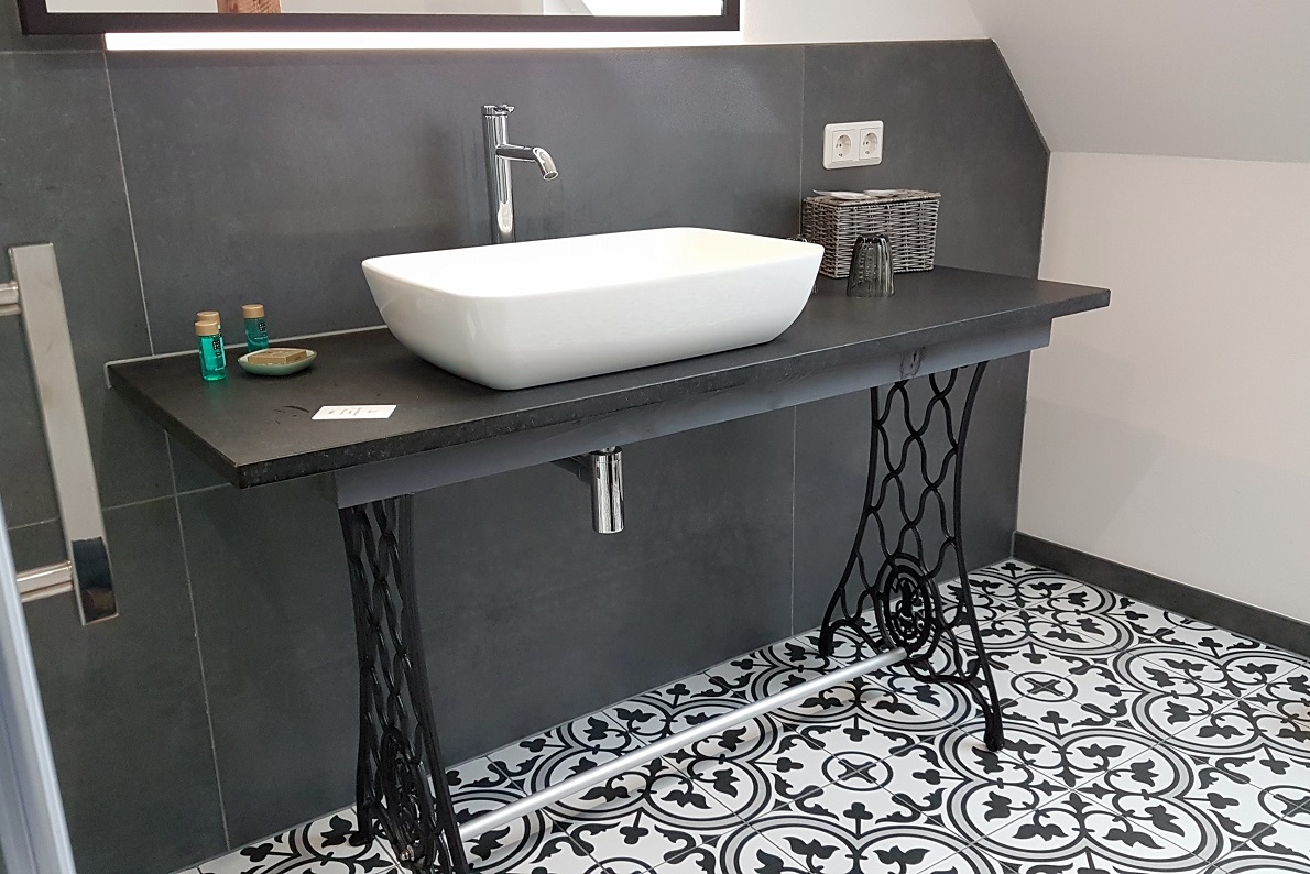 Und wenn man dann abends völlig platt aber glücklich zurück ins Hotel kommt, dann genießt man sein schönes Zimmer gleich doppelt. Zum Beispiel das stilvolle & edle Bad mit Regenwalddusche, Tageslicht und großem Waschtisch.